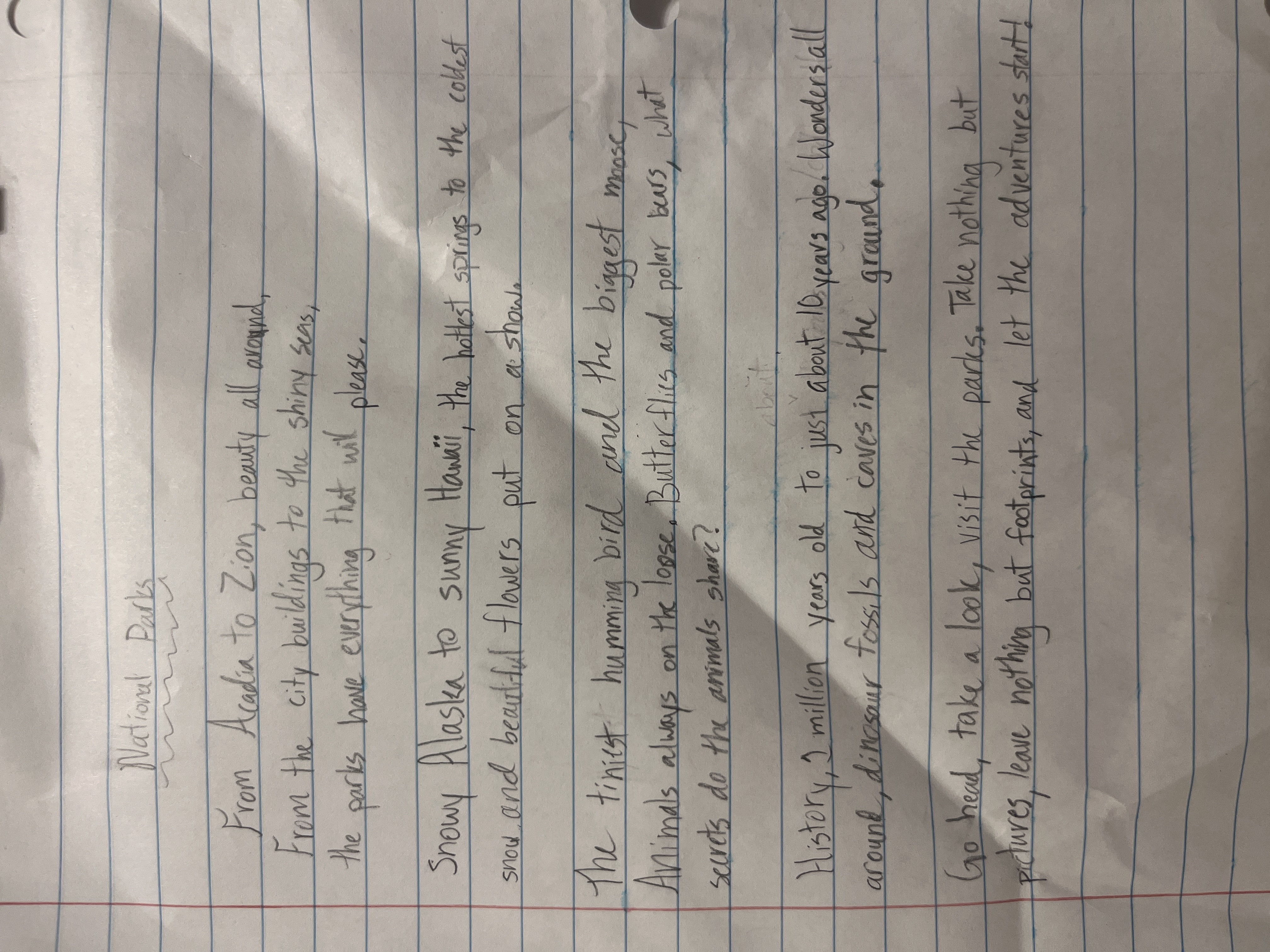 2nd Place: National Parks by Annabelle S. - 5th Grade